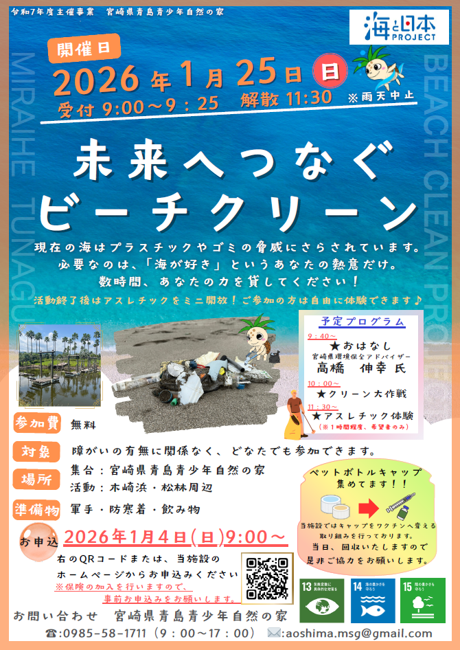 「未来へつなぐ ビーチクリーン」を1月25日(日)に開催します!