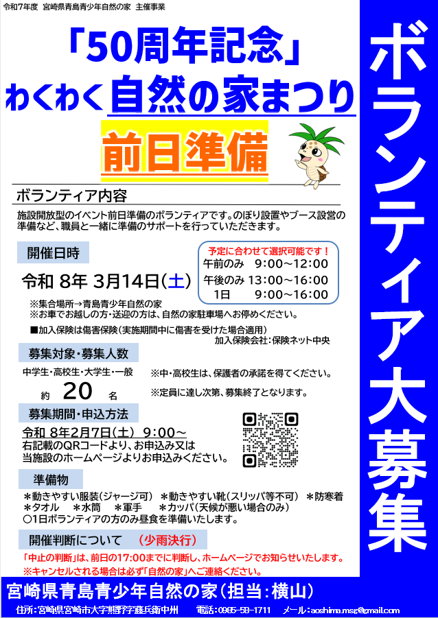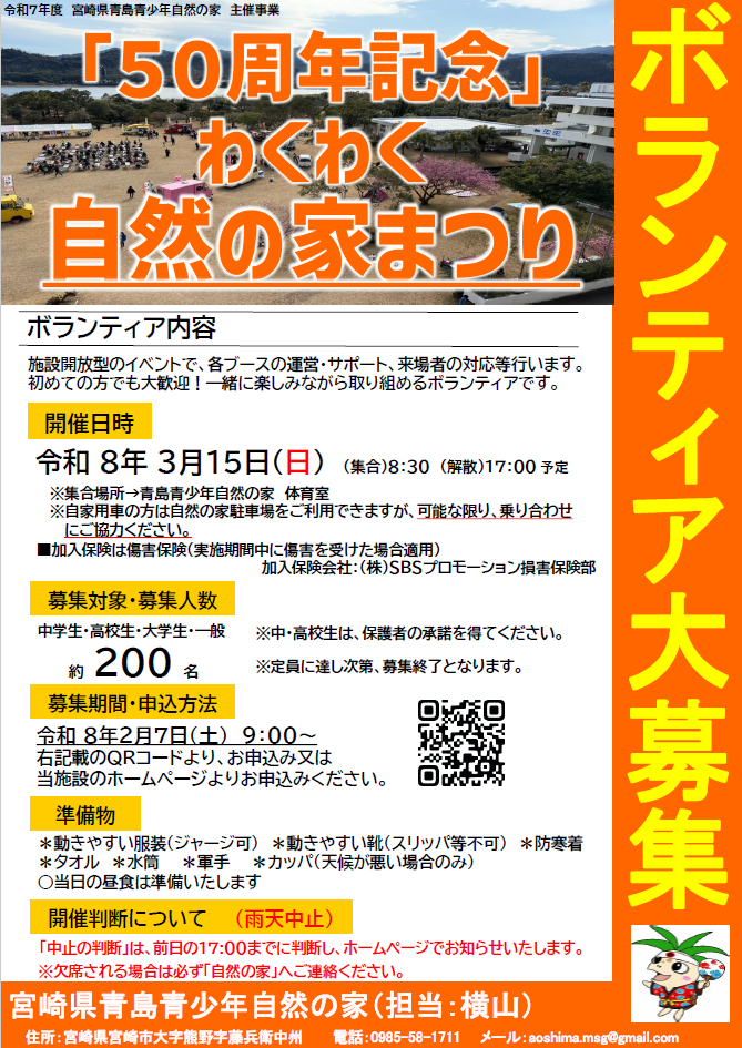 ① 3/15開催「50周年記念 わくわく自然の家まつり」のボランティアを