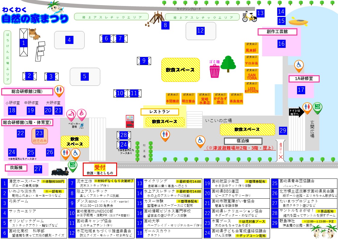 3月15日に開催する わくわく自然の家まつりの当日パンフレットを掲載します! 当日参加も大歓迎ですので、ぜひ、ご来場ください🙌 遊びブースや飲食ブースもたくさんあります☻ 受付時間 ➡ 9時30分~13時00分 50周年セレモニー➡10時00分~10時30分 本祭 ➡10時30分~15時00分
