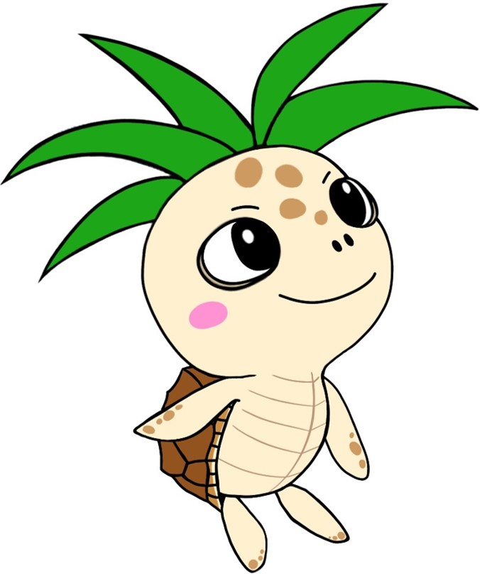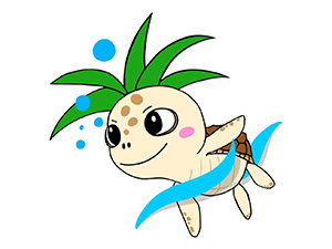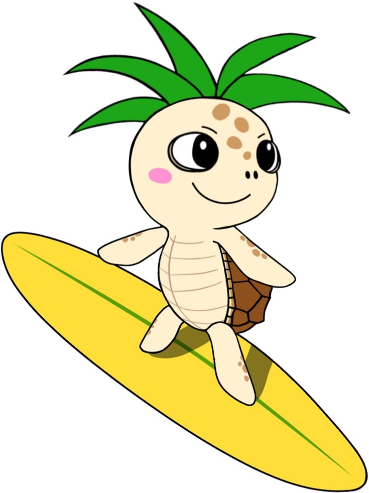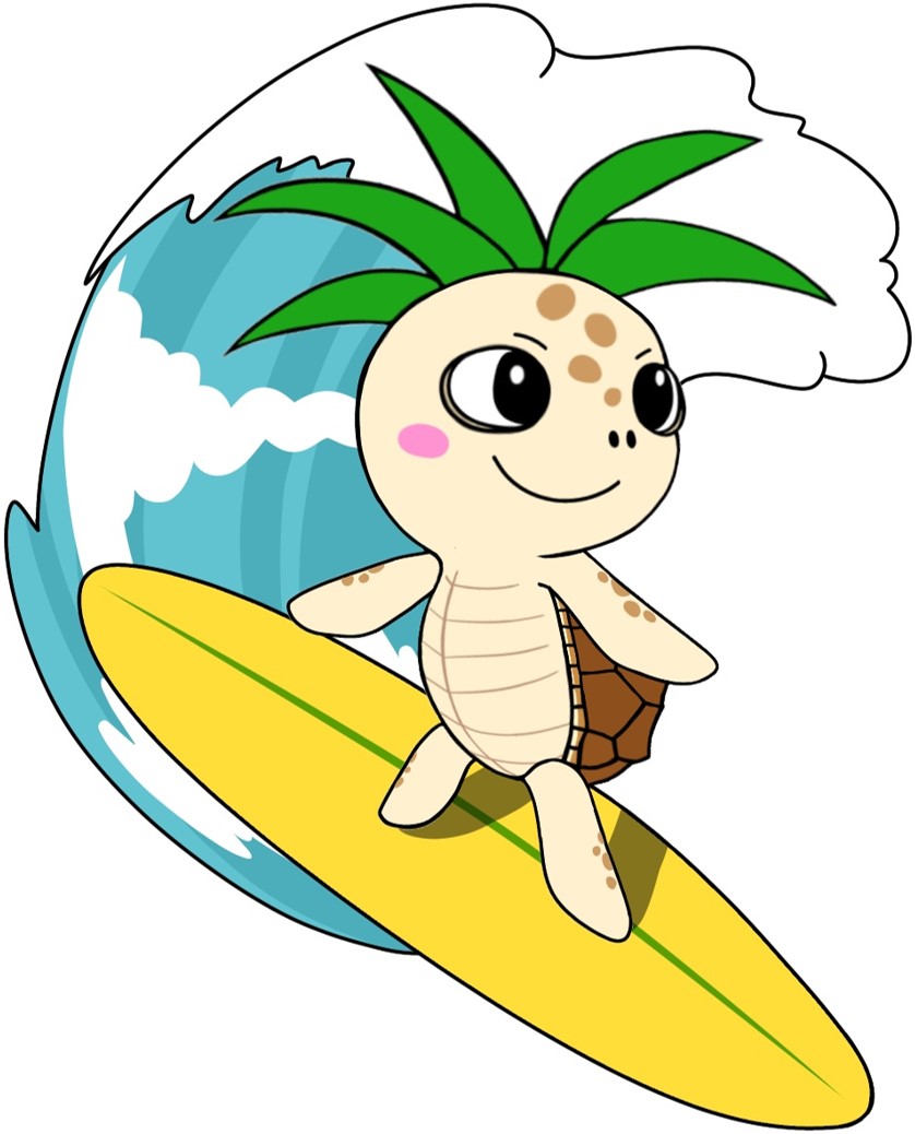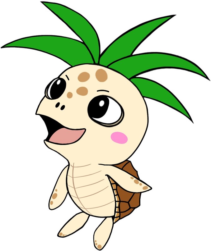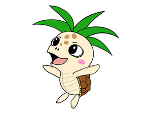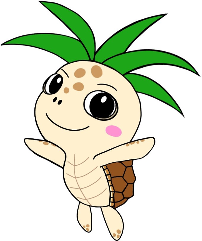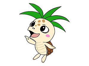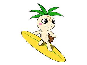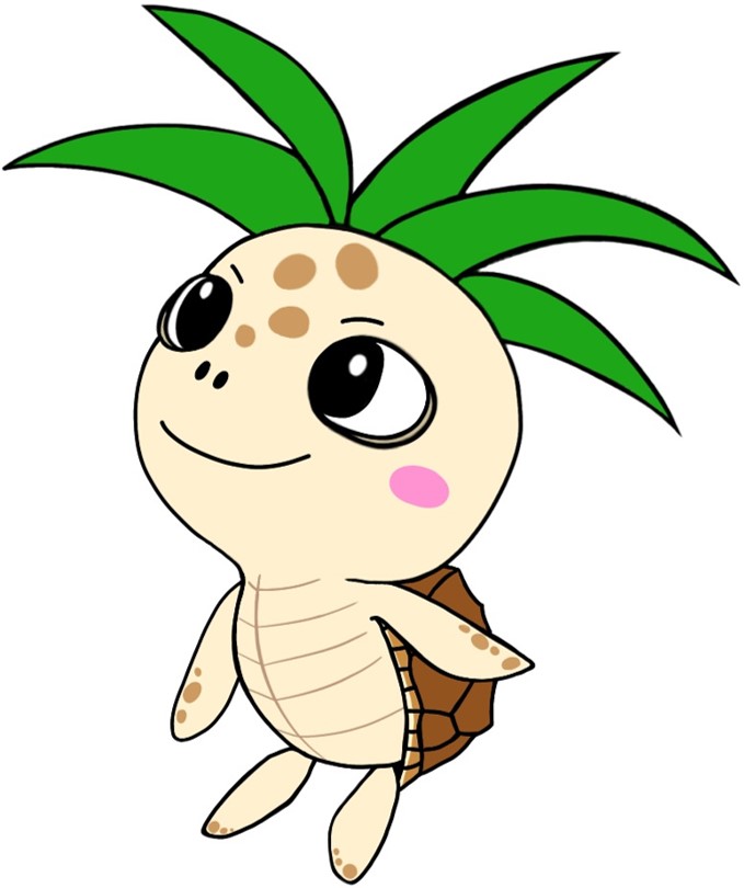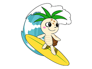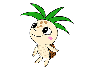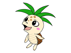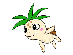 サンサンと照らす太陽に向かってまっすぐのびるフェニックスと、タートル(アカウミガメ)を組み合わせました。