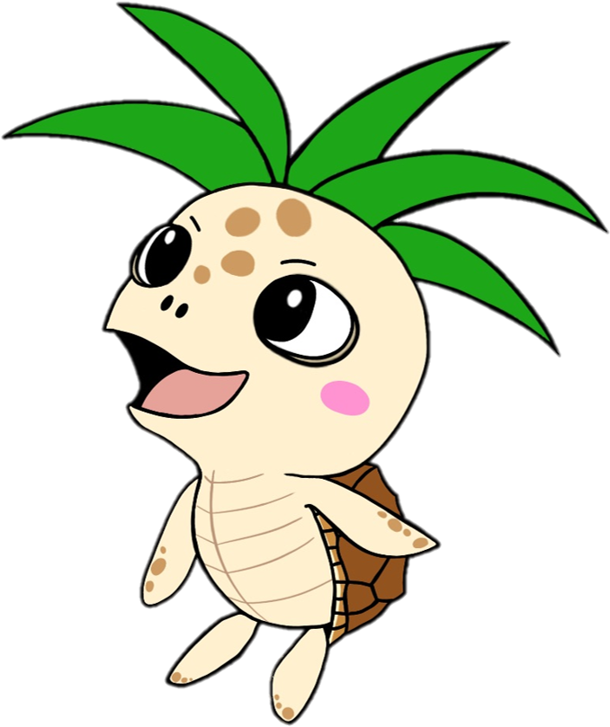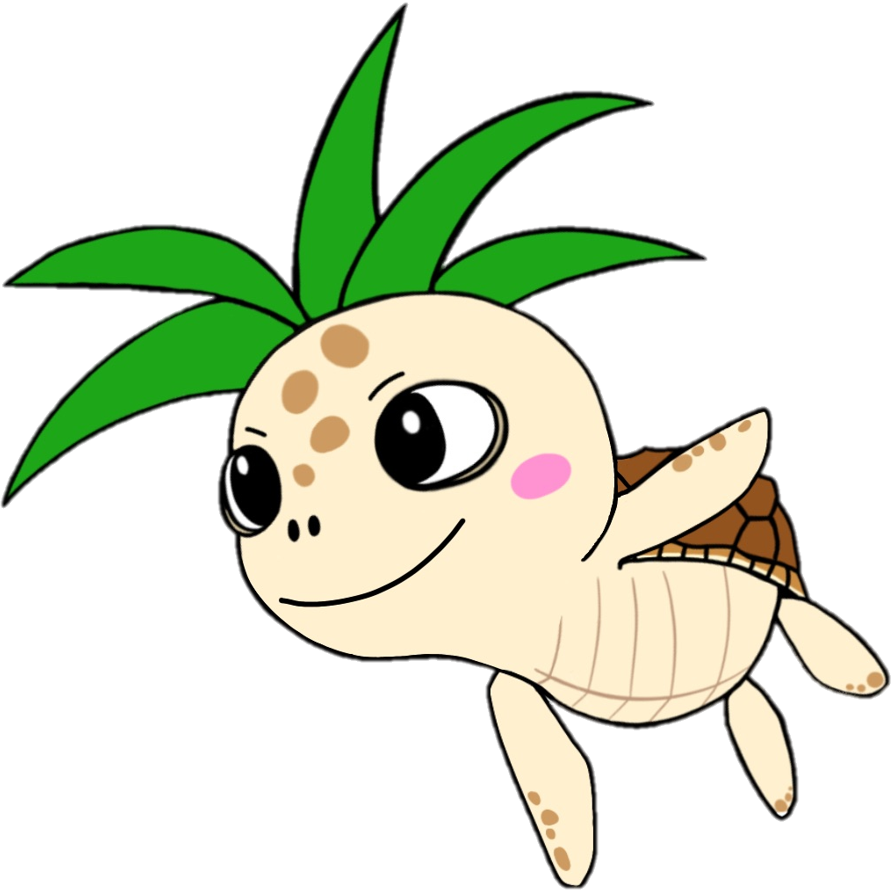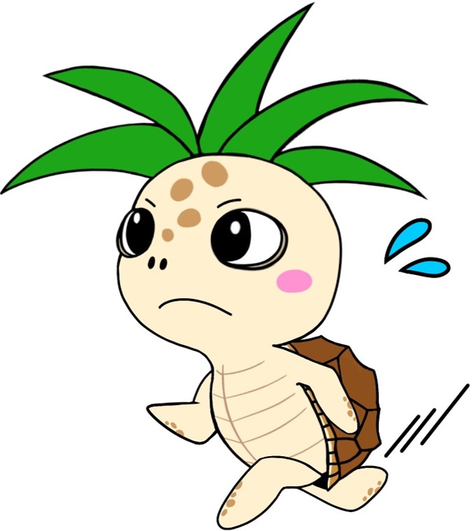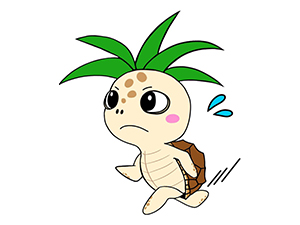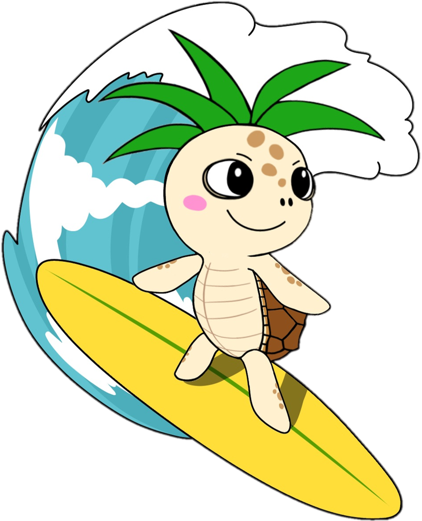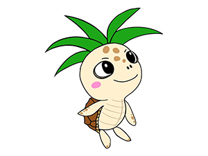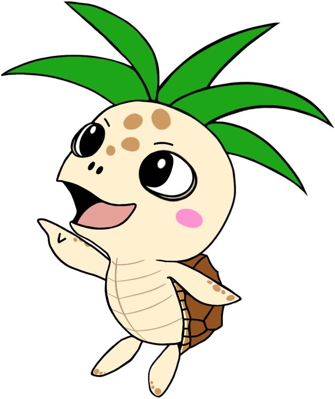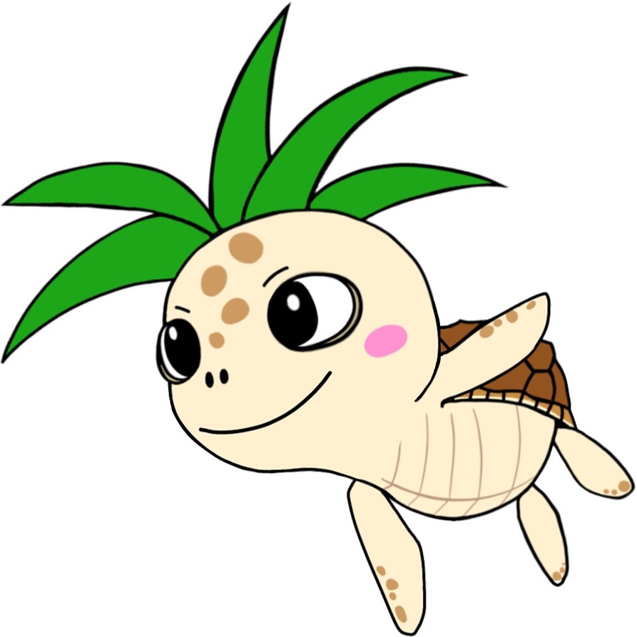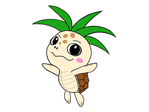 サンサンと照らす太陽に向かってまっすぐのびるフェニックスと、タートル(アカウミガメ)を組み合わせました。